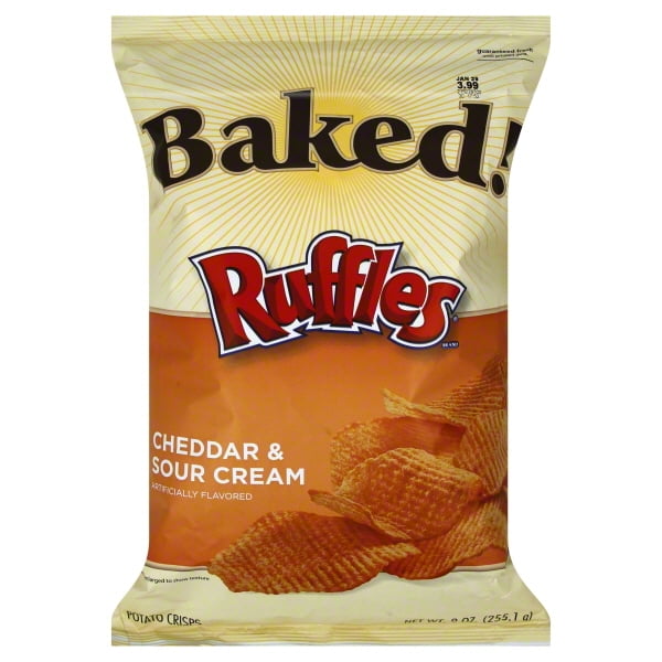 2.4 ruffles cheddar & sour cream flavored chips. Lay's stax are a tasty potato chip style snack from fritolay that are similar to pringles.these crunchy folded potato slices come in variety of flavors included barbecue, sour cream and onion, cheddar, pizza, and more. Baked potato chips with 65% less fat than original potato chips. If you want to avoid gluten, you must eat the original ruffles to avoid any gluten. <p>get the party started with great value rippled cheddar and sour cream potato chips.